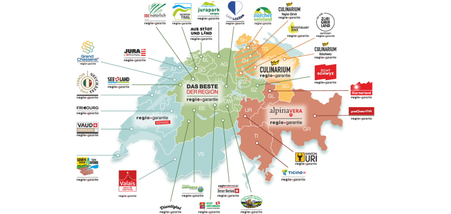 Echte Regionalprodukte haben ein einheitliches nationales Gesicht: Der Verein Schweizer Regionalprodukte ist Inhaber des Gütesiegels regio.garantie, welches zur Auszeichnung und Kommunikation von kontrollierten und zertifizierten Regionalprodukten dient. Dazu gehören auch die Richtlinien für Regionalmarken. Mitglieder des Vereins sind die vier überregionalen Organisationen «Das Beste der Region», regio.garantie Romandie, Culinarium und alpinavera.
